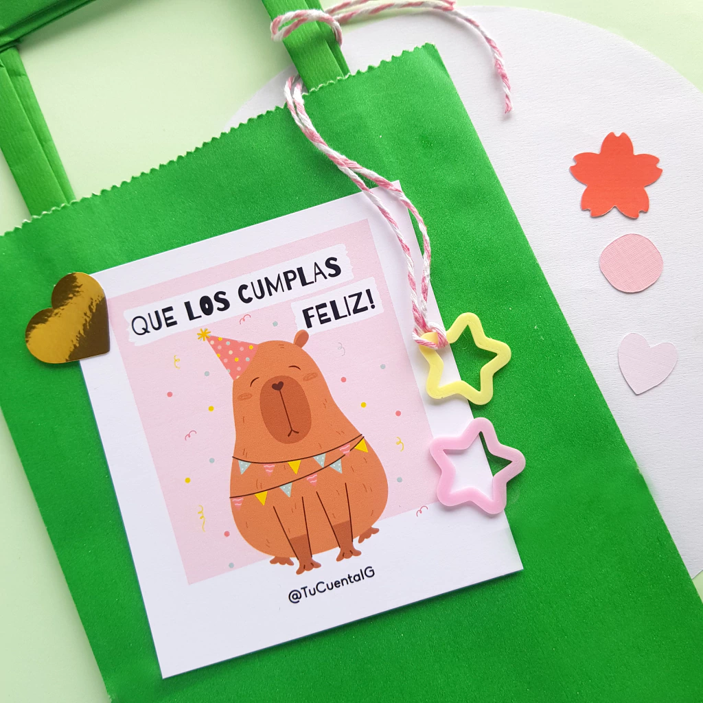 🎉18 TARJETONES "CAPY GUIRNALDA", personalizados con tu Cuenta IG, marca o nombre.