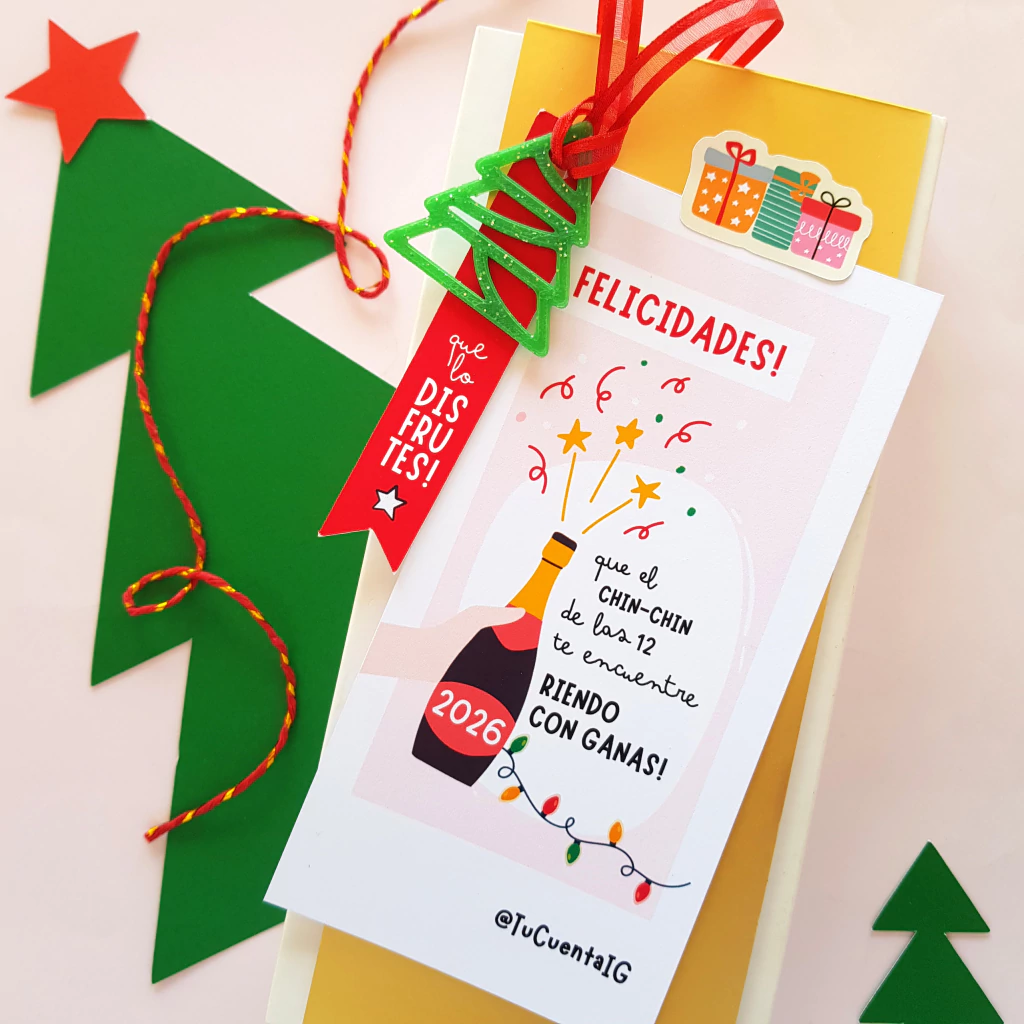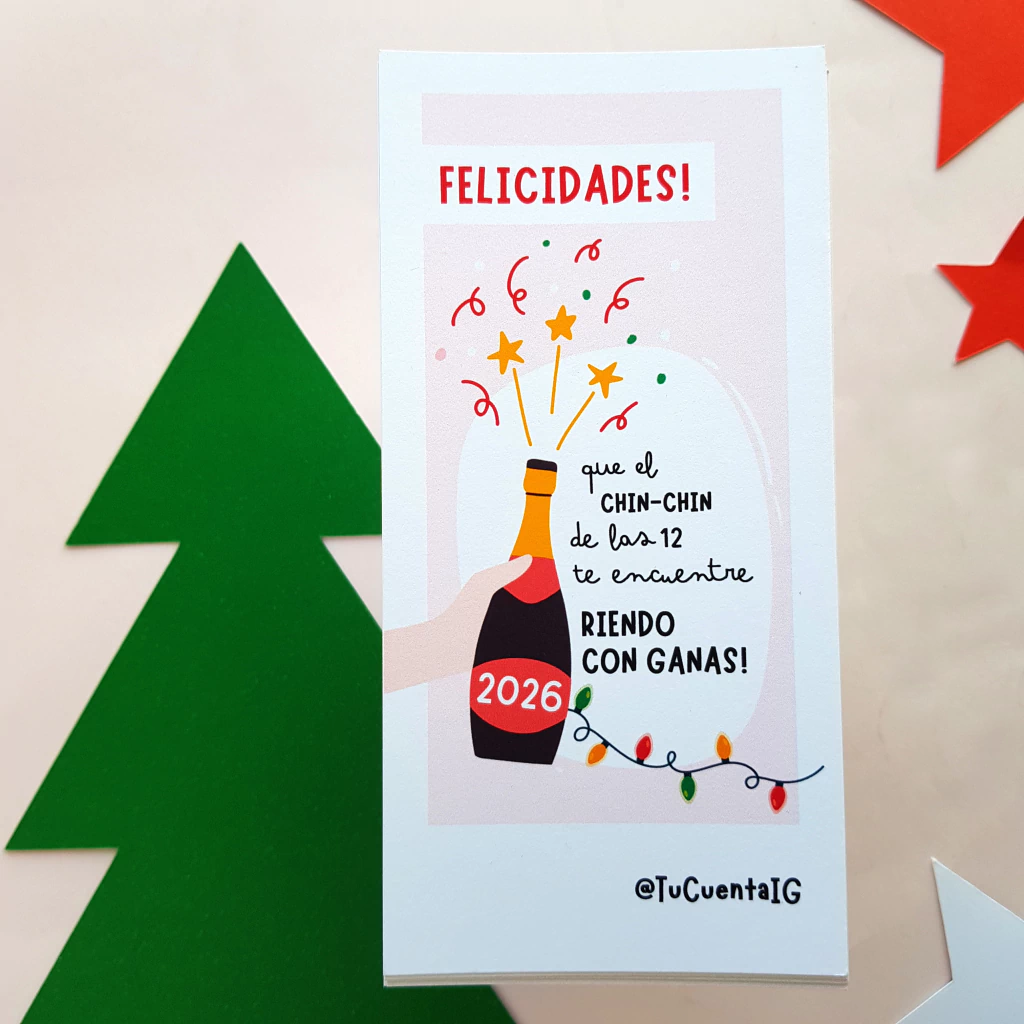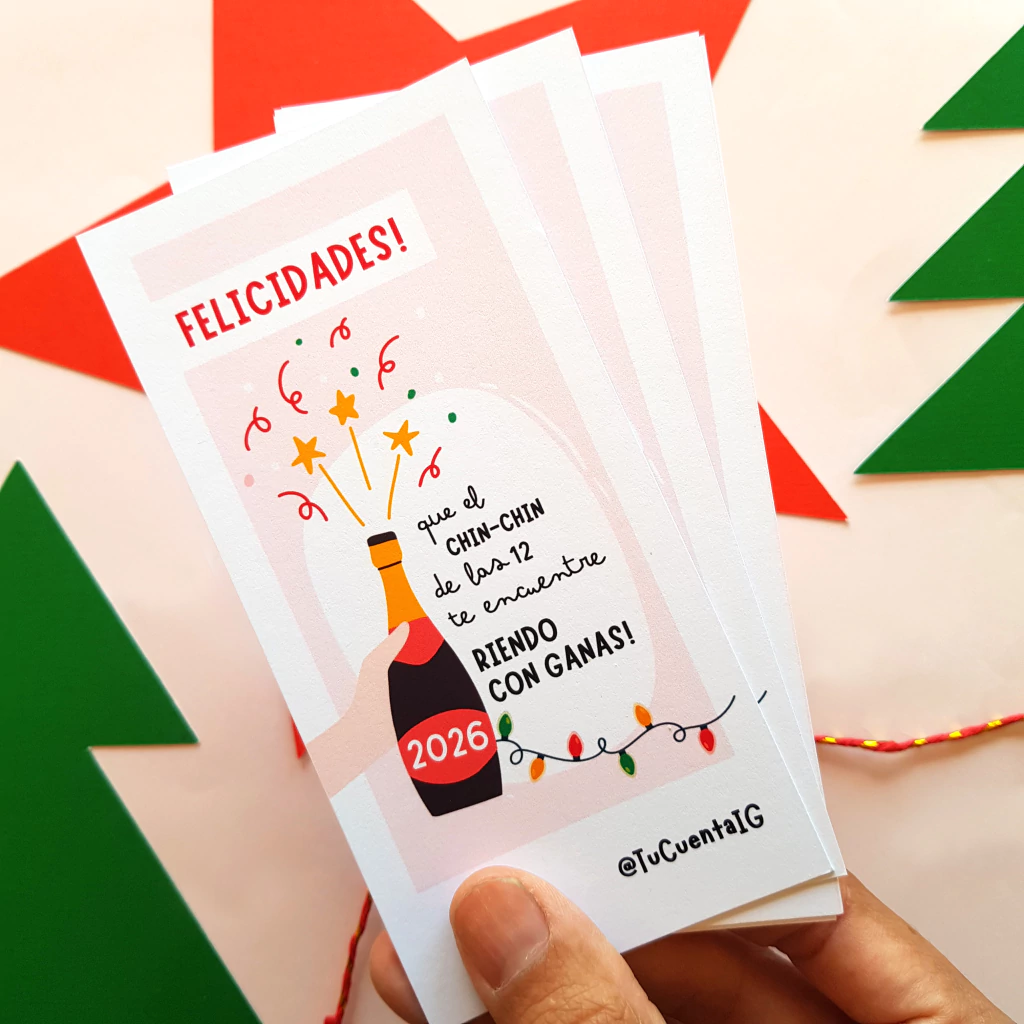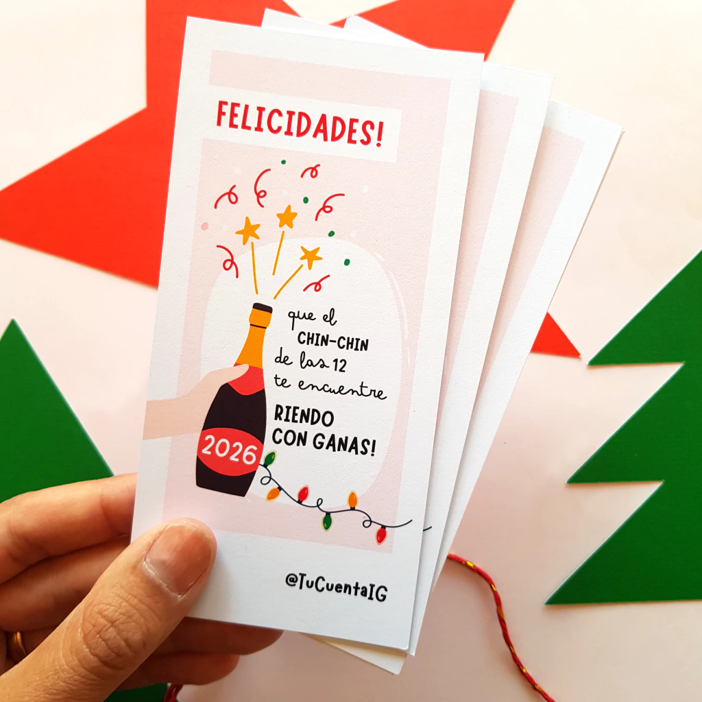 🎅🏼 12 TARJETONES ¨CHIN-CHIN¨, personalizados con tu Cuenta IG, Marca o Nombre.