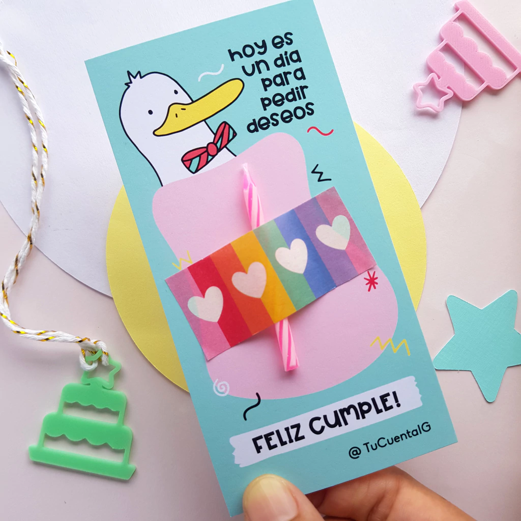 🎉18 TARJETONES PORTA VELITA "PATITO", personalizados con tu Cuenta IG, marca o nombre.